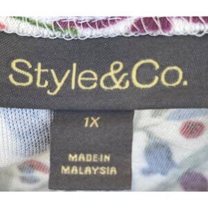 Style & Co Essential Elbow Sleeve Tee Dainty Shitake Floral Print US 1X
