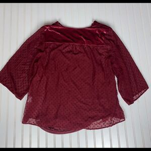 Style & Co Eyelet Red Swiss Dot Velvet Velour Yoke Top Blouse Size 3X. New with tags.