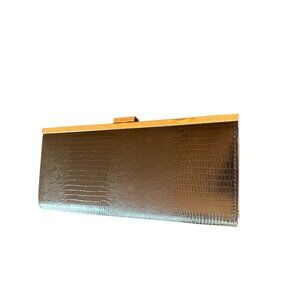 Style & Co. Faux Crocodile Black Clutch Wallet With Gold Trim Prom Formal Dance