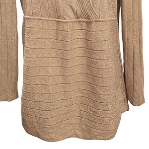 Style & Co Faux Wrap V-neck Gold Metallic Sweater