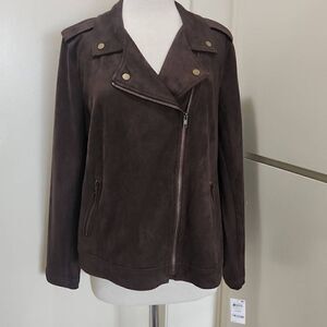 Style & Co. Faux Suede Datk Coffee Bean Brown Moto Jacket, L, NWT