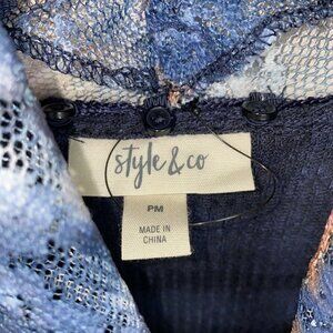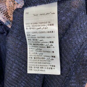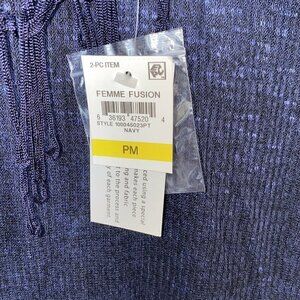 Style & Co Femme Fusion Navy Blue 2 Piece Fringed Neck Scarf Top Shirt Top