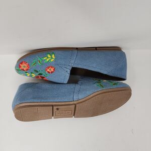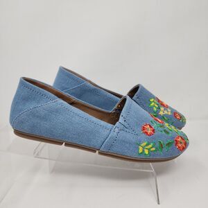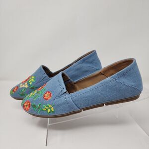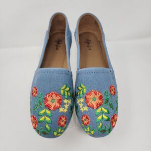 Style & Co Flat Shoes Womens 6 Blue Comfort Slip On Denim Embroidered Floral