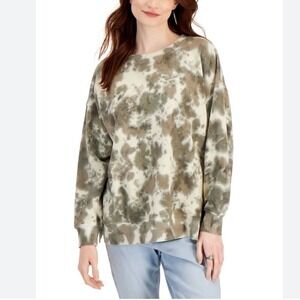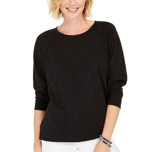 Style & Co Floral Black Sweatshirt tan print M