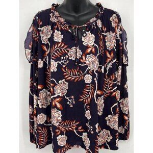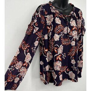 Style & Co Floral Blouse Long Sleeve Blue Pink Red Cold Shoulder Large NWOT