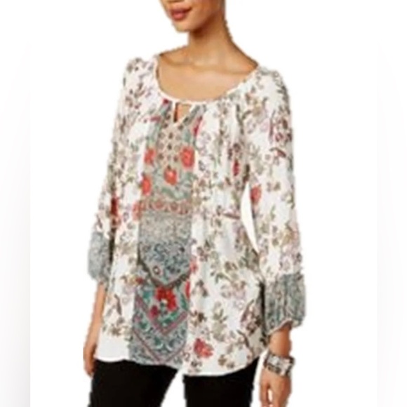 Style & Co Floral Flowy Boho Tunic Peasant Top size M Beachy