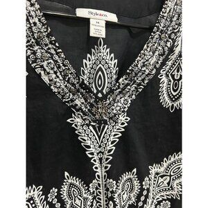 Style & Co Floral Paisley V-Neck Tunic Top Black White Sz 14 Studded Bohemian