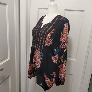 Style & Co. Floral Print Tunic Blouse Size XL Handerchief Hemline 100% Polyester