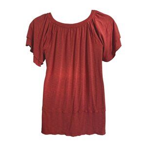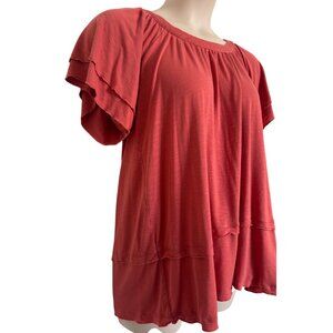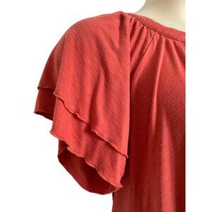 Style & Co Flutter Sleeve Double Hem Blouse Size 0X Peachy Orange EUC