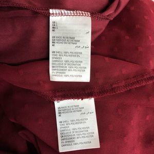 Beautiful garnet/burgundy shade, with sheer body and sleeves with tonal Swiss dots, velvet floral detailing at yoke. Comes with solid camisole (not attached), very stretchy with adjustable thin straps.