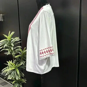Style & Co. Global Escape Kimono, embroidered trim, tassel, 3/4 sleeve