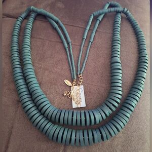 Elevate your accessory game with this stunning Style & Company Gold tone Dark Green layered Bead ring necklace. A Very Bold Statement Necklace.. an unusual piece for those high fashion diva's .Worn with the right blend can be a stunning finish.