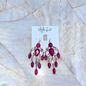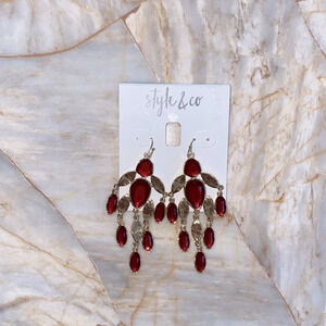 Style & Co Gold-Tone Red Stone Chandelier Earrings