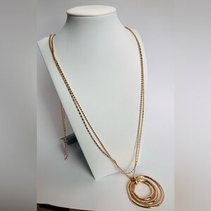 Gold-Tone Multi-Chain Circle Pendant Necklace