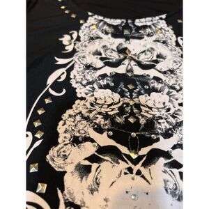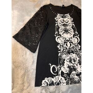 Style & Co Gothic Floral Lace Bell Sleeve Dress Black White Studded Details SZ L