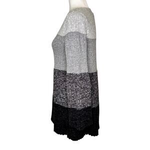 Style & Co. Gray Black Striped Color Block Bell Sleeve Tunic Sweater