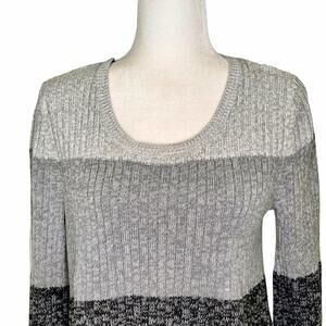 Style & Co. Gray Black Marled Striped Color Block Bell Sleeve Tunic Sweater. Cotton acrylic. Tag has been removed. I have used pic from the same sweater I'm selling in another size. Size X-Large. No snags, pills, holes. Excellent condition. Please go by measurements taken flat as this has been washed.