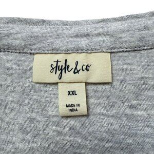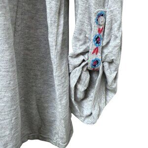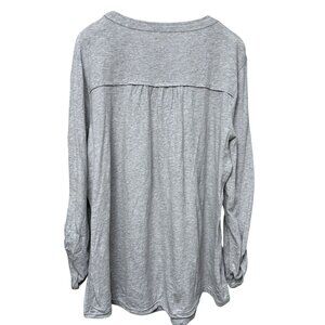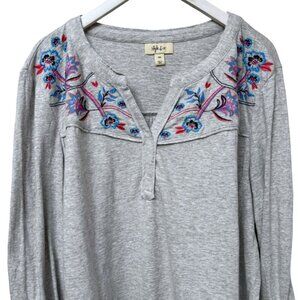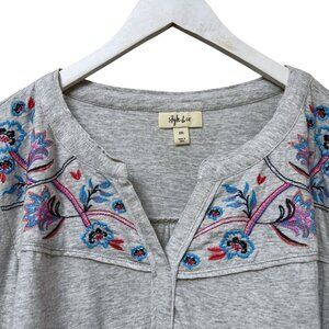 Style & Co. Gray Henley Tee XXL Womens Boho Top Embroidered Long Sleeve NWT