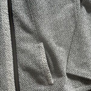 Chic gray jacket with geometric pattern. Features front zipper and pockets. Perfect for layering. (Dress sold seperatley)