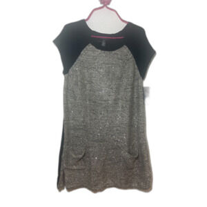 Style & Co Gray/Black Shimmer Sweater Dress Short w/ Pockets Cotton Blend Knit Size L - New with tags.