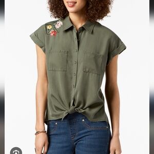 Style & Co. Green Button-Down Shirt with Floral Detail