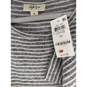Style & Co Hannah Striped Top Black Stripe 0X Scoop Lightweight Comfortable Snit