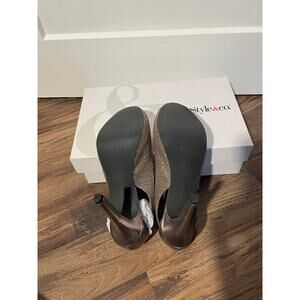 New in Box Size 8 Heels with glitter Pewter/silver/gold color