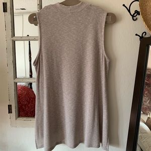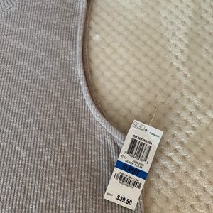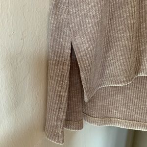 Pair this long and comfy tunic top with your favorite leggings and you’ll be all set. This soft knit top in light beige has a high-low hem measuring 26” in the front and 29” in the back. Side slits have also been added for ease of wear. Having never been worn, and with the tags attached, this top is in perfect condition.