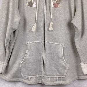 Style & Co Full zip hoodie. Embroidered front, full zip up with drawstring, tassels and pockets.Distressed, thermal lined. Size tag is missing, measurements included in photos.