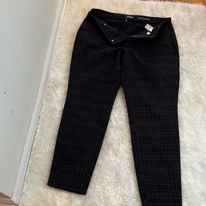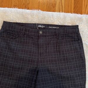 These Style & Co black and gray plaid jeans are curvy and has a skinny leg. This five pocket Jean has a gold zipper closure with a black Style & Co button. There are two front pockets and two back pockets. They also have belt loops. Brand new – No tags - Size 16