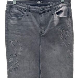 Style & Co Jeans Women’s Size 12 Gray Raw Hem Slim Leg Bead Embellished