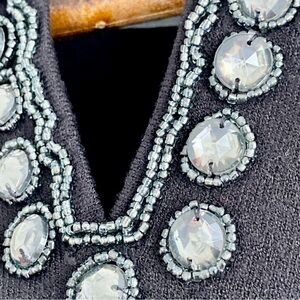 Style & Co knit black sweater top with beautiful jeweled details around neck. Embroidered v neckline.