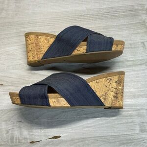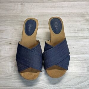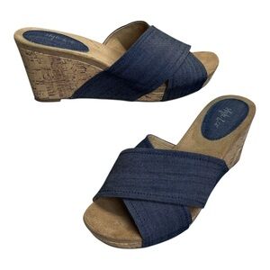 Style & Co Jillee Blue Denim Cross Strap Wedge Slip On Sandals Women’s size 7.5