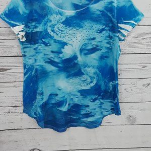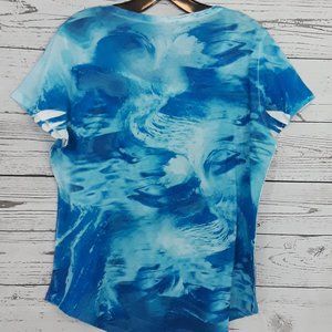 Style & Co L Blue Embellished Scoop Neck Short Sleeve Top WS281