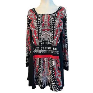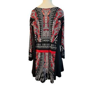 Style & Co Ladies XL Red Black Abstract Pullover Tunic 3/4 Sleeve Bling Flowy