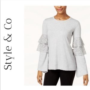 Style & Co Layered Lace Ruffle Sleeve Sweater
