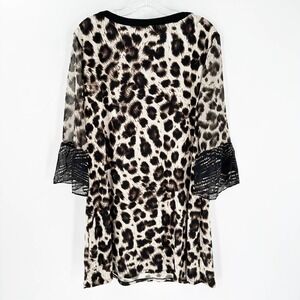 Style & Co Leopard Bell Sleeve Tunic Blouse Mini Dress
