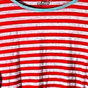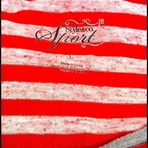 EUC: Style & Co L striped long sleeve rounded neckline tee. Cute and sporty red and white stripes with gray trim around the neck line. Soft and lightweight.