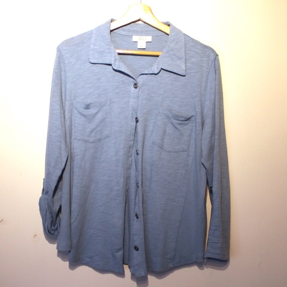 Style & Co Light Blue Button Up, Ribbed side panels, Roll and button sleeves