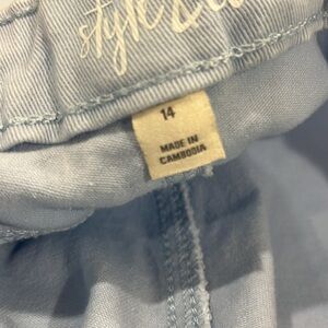Light blue capri pants with a curvy fit. Stylish and comfortable.