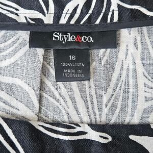Style & Co Linen A-Line Skirt 16 Black White Floral Print Midi Boho Classic