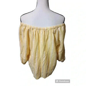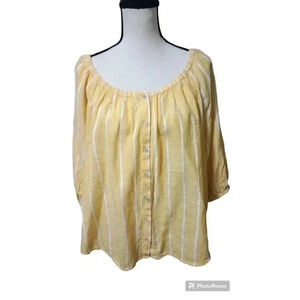 Style & Co Linen Blend Blouse Peasant Beachy Cruise Wear Yellow Size 1X