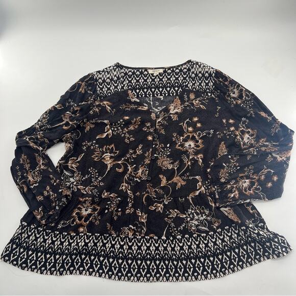 Style & Co Long Sleeve Mixed Print Blouse Plus Size Black and White NWT Boho