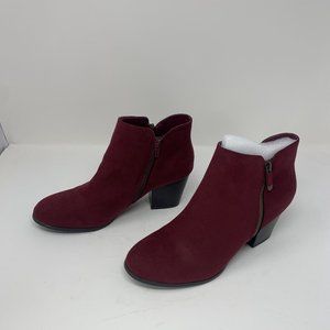 Style & Co Masrinaaf Ankle Bootie Women 11M Wine Round Toe Side Zip Heeled S0549
