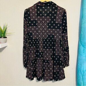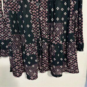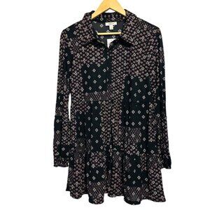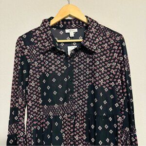 Style & Co Mesh Geometric Button Down Dress NWT Purple Black Size S