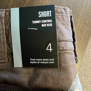 This is Style & Co's tummy control mid rise short. Size 4 Regular. It is 98% cotton.