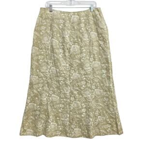 Style & Co Midi Skirt Women's Size 12 Tan Floral Print Linen Neutral Flowy