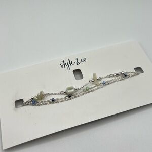 Style & Co Mixed Bead Multi-Row Ankle Bracelet in Silver-Tone NWT MSRP $25