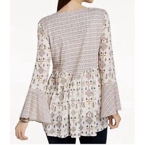 Style & Co Mixed Print Women’s XL Peasant Top Tassels Boho Lined Prairie Shirt