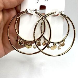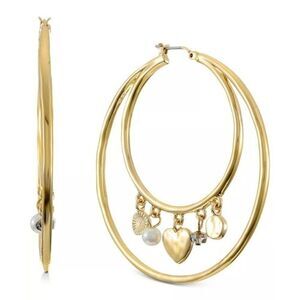 Style & Co Mixed Shaky Charm Heart Double-Row Hoop Earrings Women Gold Tone Larg